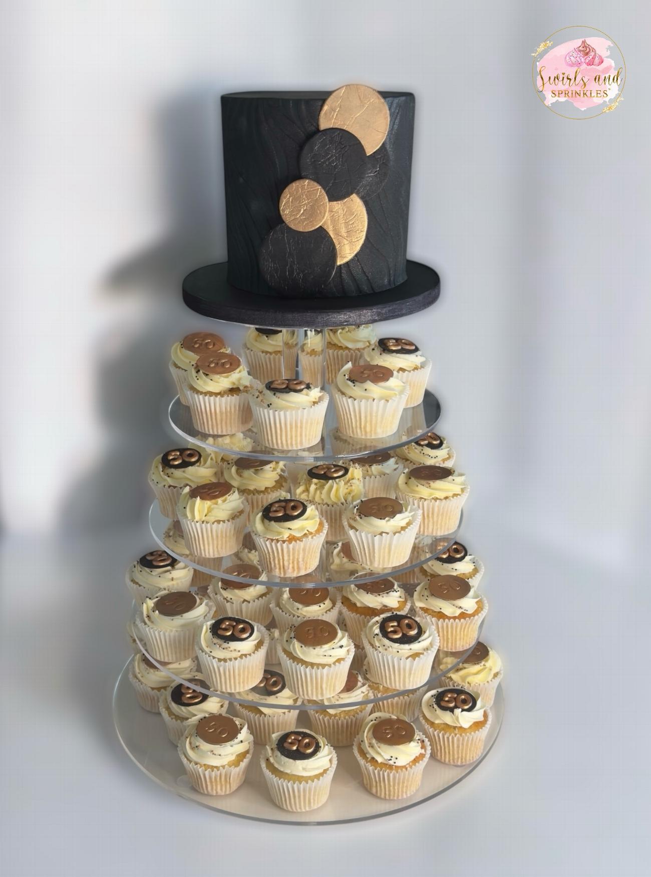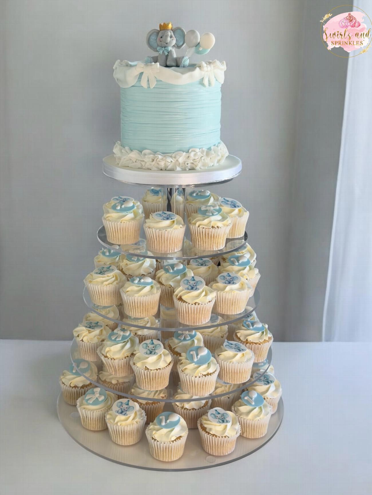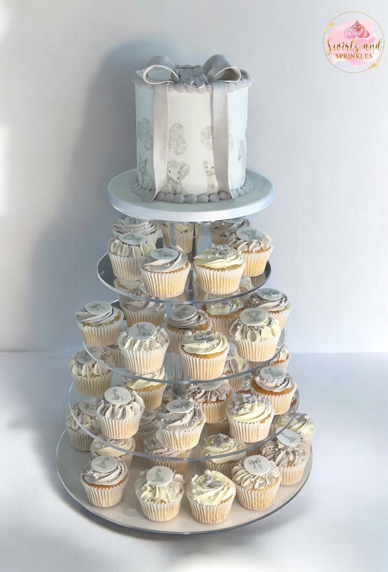 Tiered to perfection, our delicious cupcake towers topped with a beautiful cutting cake are the ultimate celebration showstoppers – ideal for all occasions including weddings.